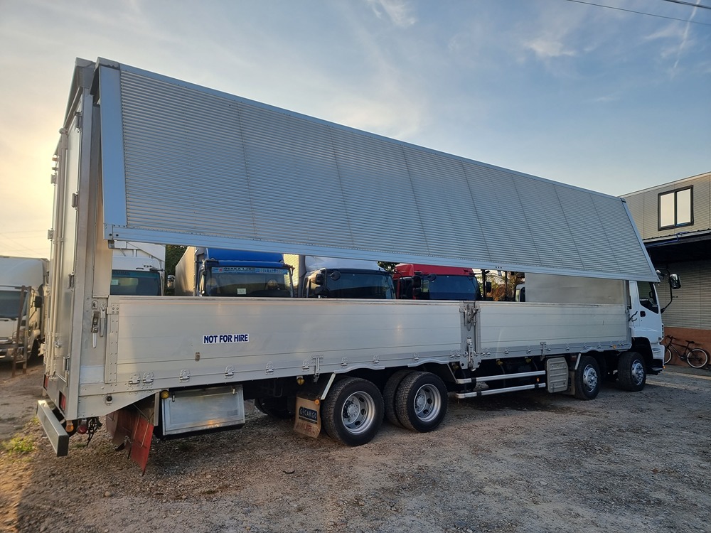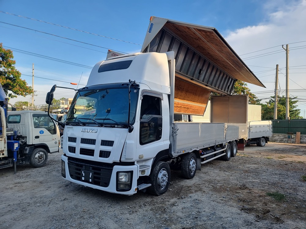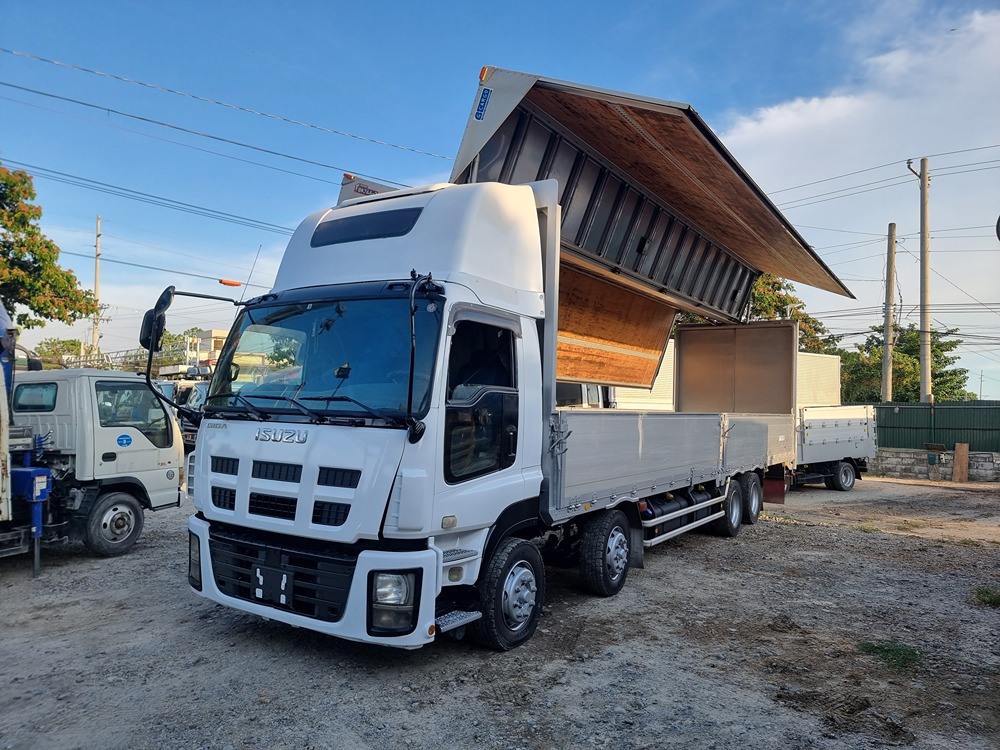 Overall, the Isuzu Giga Wingvan is a compelling choice for businesses that need to efficiently transport massive cargo volumes. The powerful chassis, 12-wheel configuration, and expandable wing walls suggest its capability for heavy-duty hauling tasks. However, to get the complete picture, you might need to do further research to determine the specific variant, cargo space size, and any additional features.